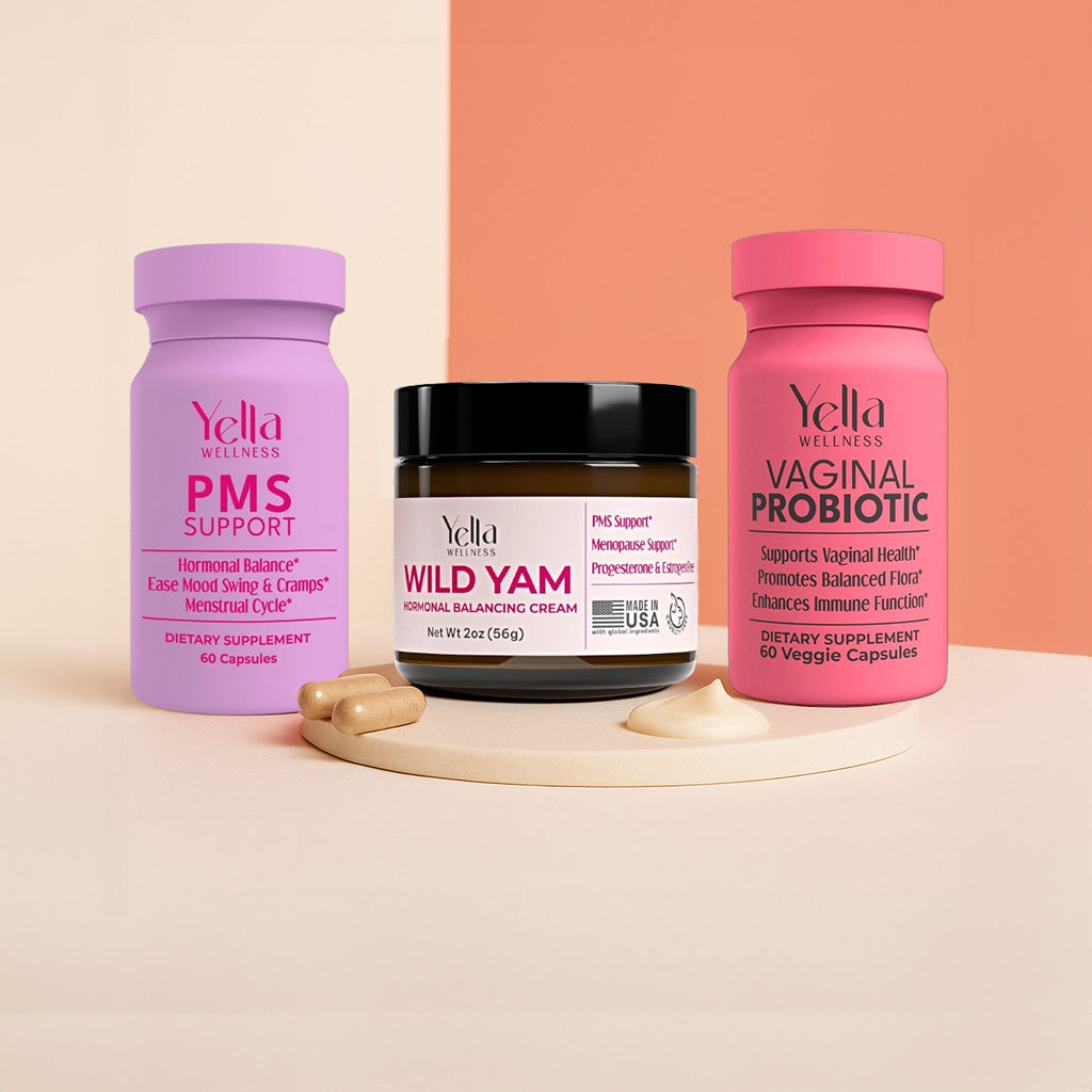 Start by asking: “What feels loudest in my body right now?” For many women, that might be PMS symptoms, monthly mood swings, or vaginal comfort and odor. Each Yella formula is designed to target a specific pillar—cycle support, hormone rhythm, or vaginal microbiome balance—so you can start with the concern that feels most urgent, or choose a curated bundle if you want full-body support from day one.*