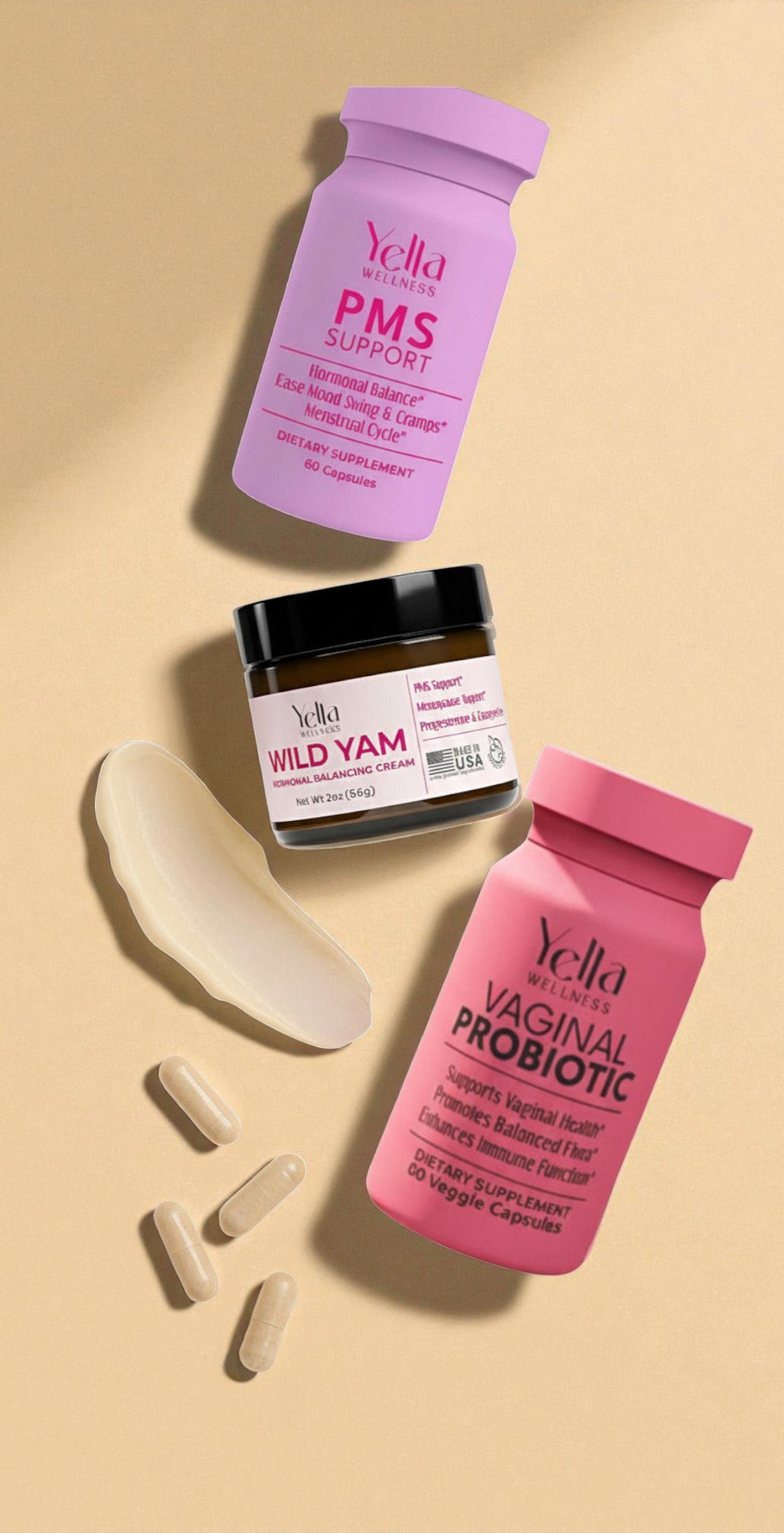 Yella products are crafted with high-quality botanicals, vitamins, and probiotics. We formulate without parabens, phthalates, or petroleum, and all products in the bundle are hormone-free. For full supplement facts and complete ingredient lists, see each individual product page.